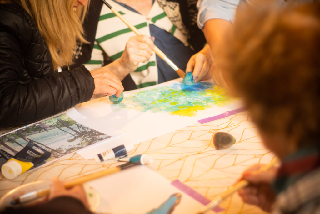 Elle propose des séances d’art-thérapie auprès des seniors isolés, et de personnes atteintes de maladies neuro-évolutives.